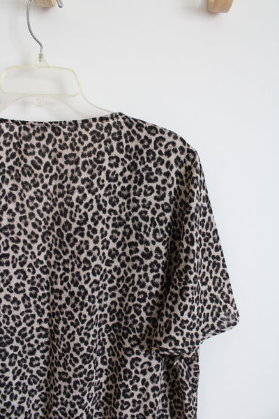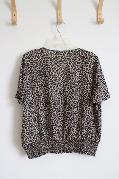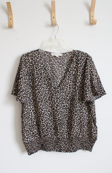 Michael Kors Brown & Black Leopard Print V-Neck Top | XL