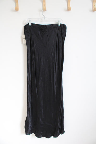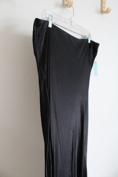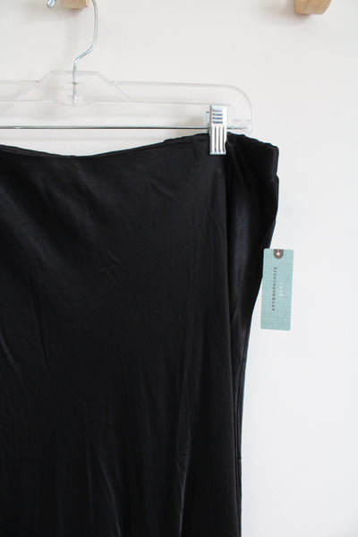 NEW Anthropologie Plus Black Satin Slip Skirt | 1X