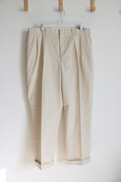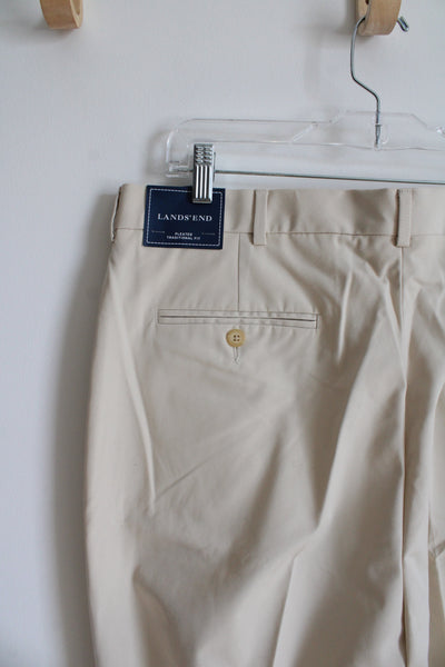 NEW Lands' End Pleated Traditional Fit Beige Pants | 38