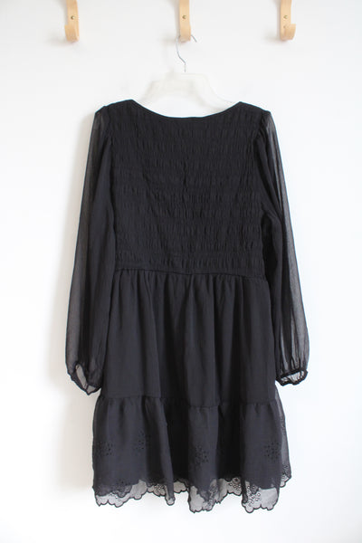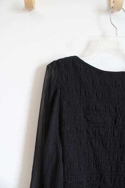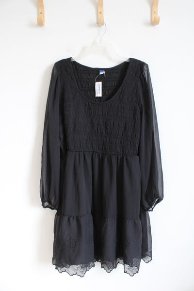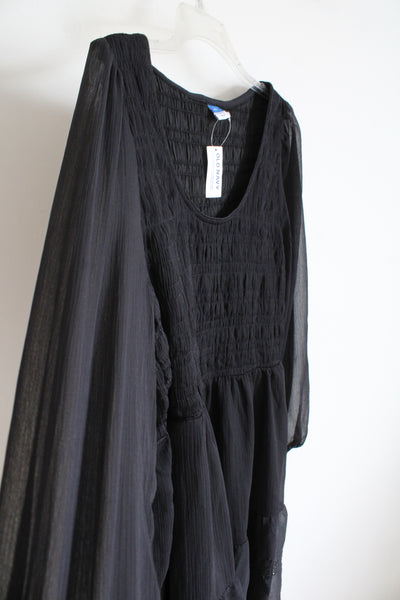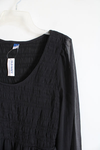 NEW Old Navy Black Ruched Sheer Sleeve Dress | XL