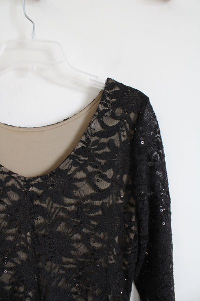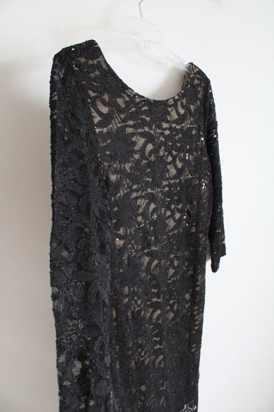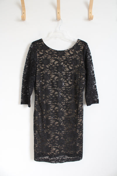 Ronni Nicole Black Sequined 3/4 Sleeve Dress | 10P