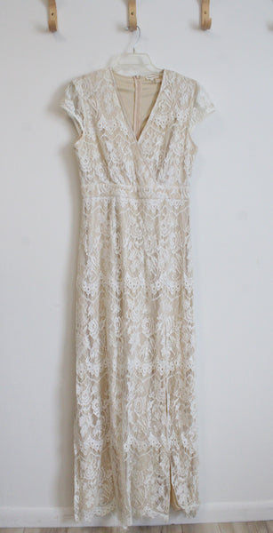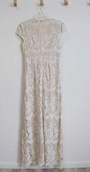 Southern Fried Chics Cream & Tan Lace Overlay Maxi Dress | XL
