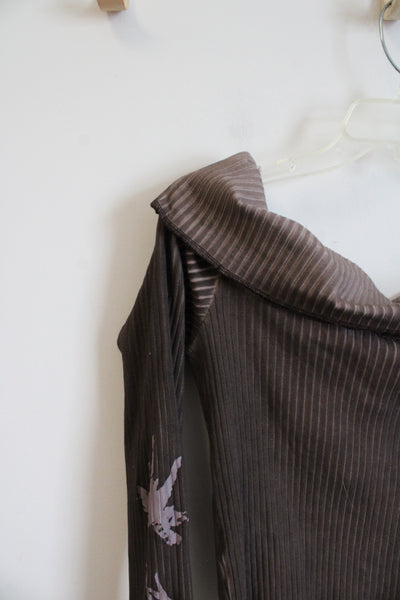 Urban Outfitters Brown Ribbed Off The Shoulder Top | M