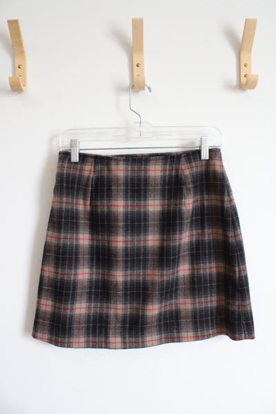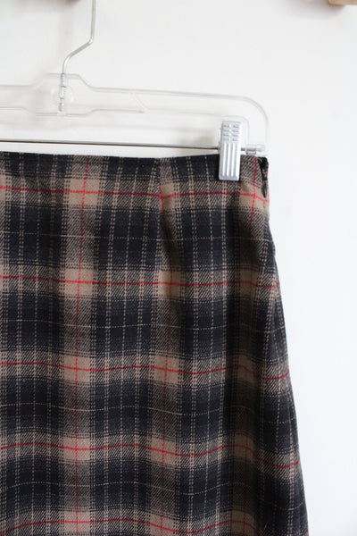 Vintage The Limited Black Tan & Red Plaid Wool Blend Mini Skirt | 4
