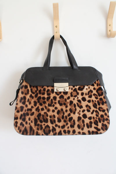 Kate Spade Adriana Leopard Hair & Black Leather Satchel Bag