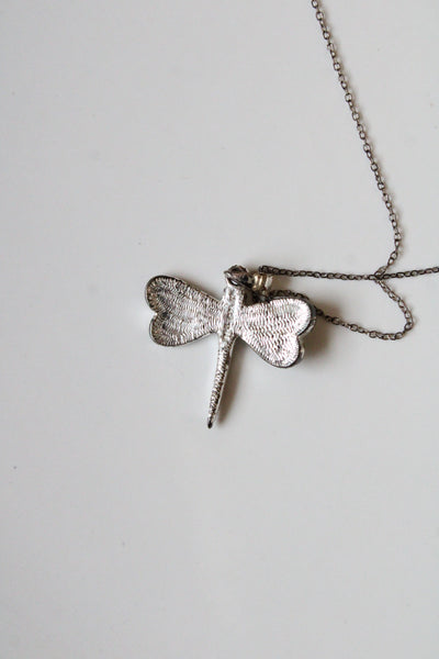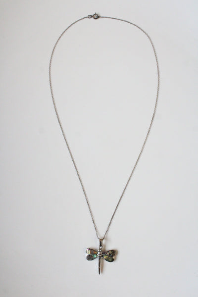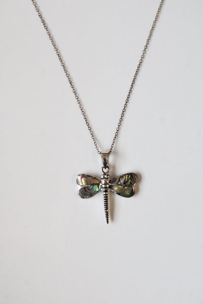 Abalone Shell Dragonfly Pendant Sterling Silver Necklace