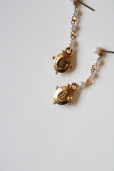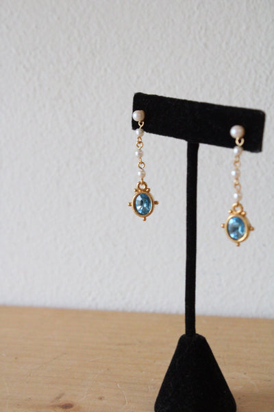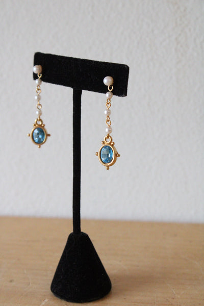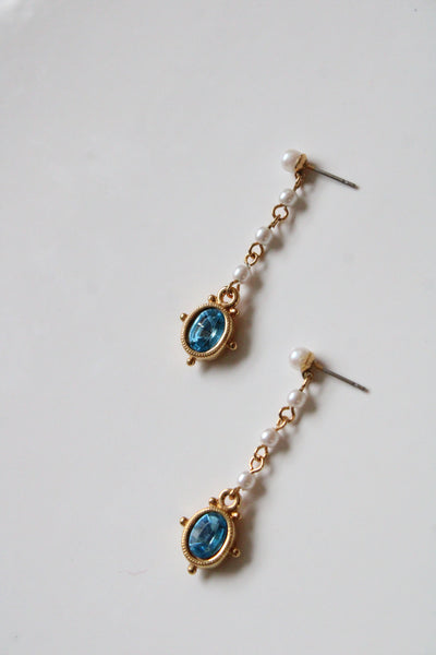 Avon Faux Pearl Aqua Stone Swinging Drop Pierced Earrings