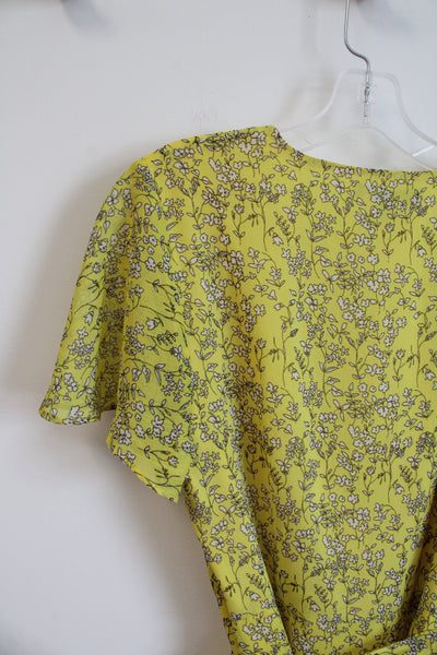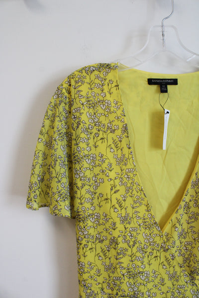 Banana Republic Yellow & White Floral Wrap Dress | 12