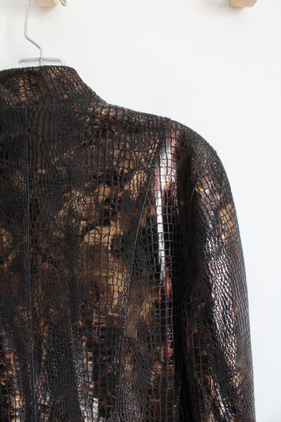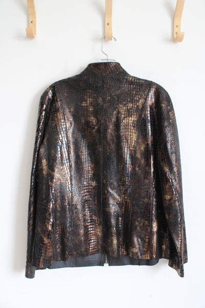 Chico's Brown Metallic Animal Print Leather Jacket | 2 (L)