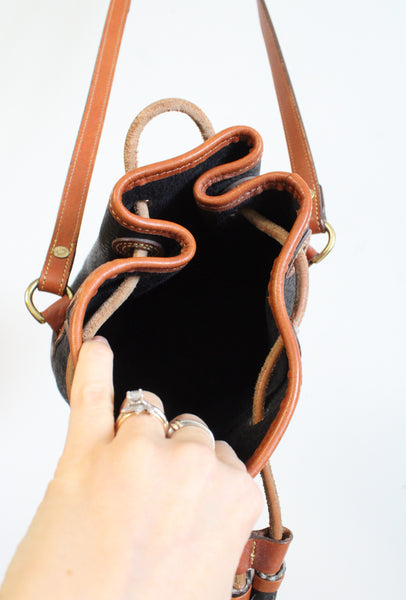 Dooney & Bourke Vintage Black & Brown Leather Drawstring Bucket Bag