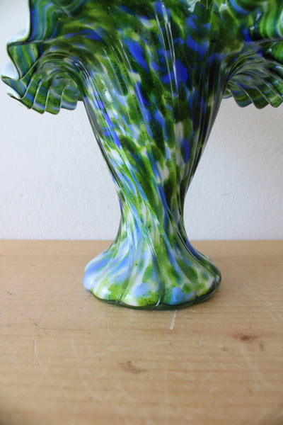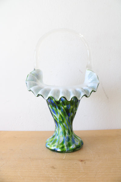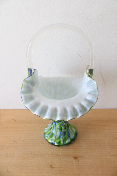 Fenton Murrhina Blue Green Swirl Glass Basket
