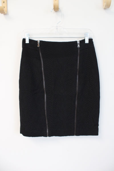 Ann Taylor Black Textured Double Front Zipper Pencil Skirt | 2
