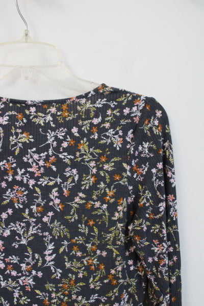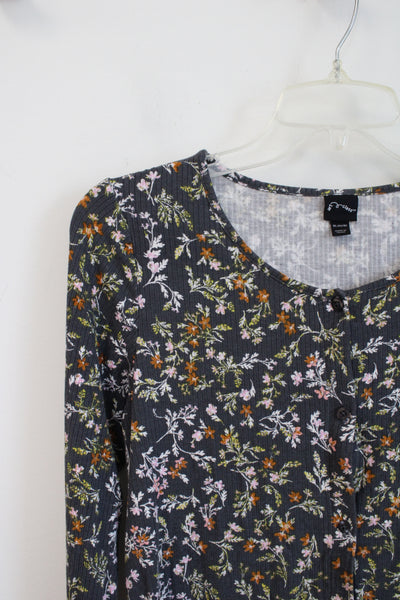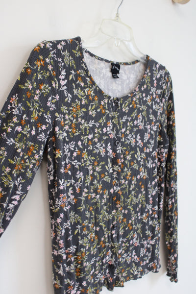 Art Class Gray Floral Button Down Long Sleeved Shirt | Youth XL (14/16)