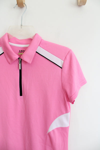 Izod Performance Pink & White Quarter Zip Athletic Polo Shirt | S Petite