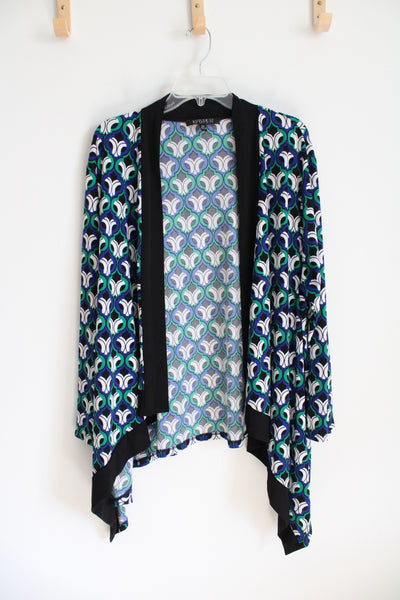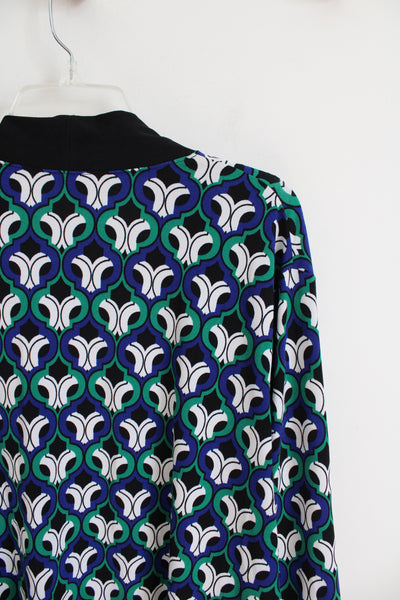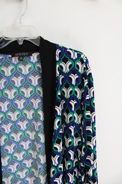 Kasper Blue Green Black & White Patterned Cardigan | 3X