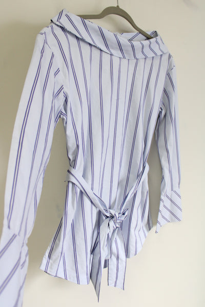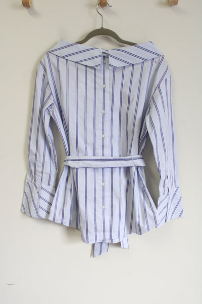 NEW Banana Republic Blue Purple Striped Boat Neck Cotton Belted Top | S