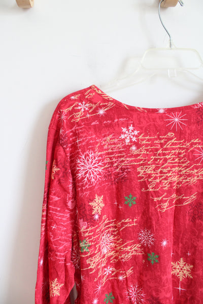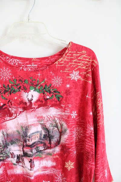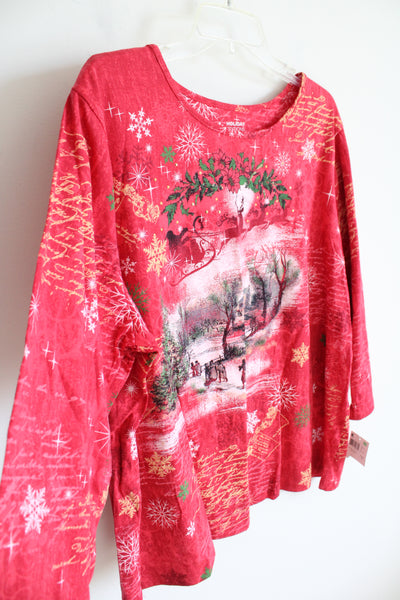 NEW Holiday Editions Christmas Scene Red Long Sleeved Top | 2X