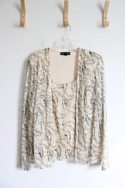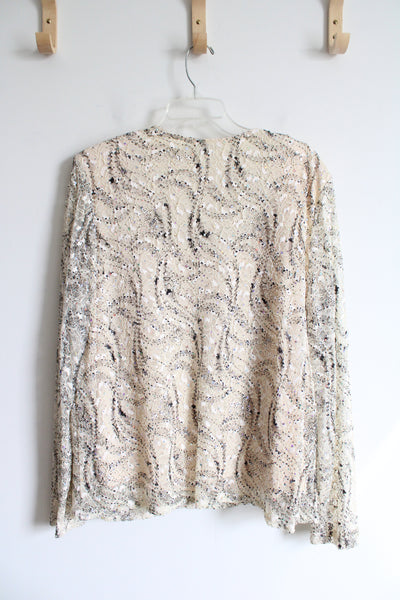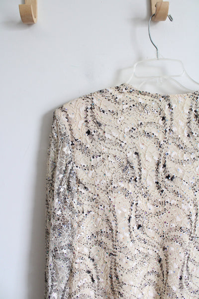 R&M Richards Black & Cream Sequined Lace Top | 16