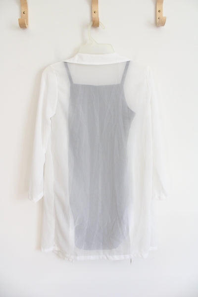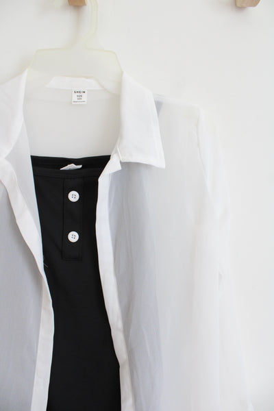 Shein Black Dress & White Sheer Cardigan Set | Youth 10