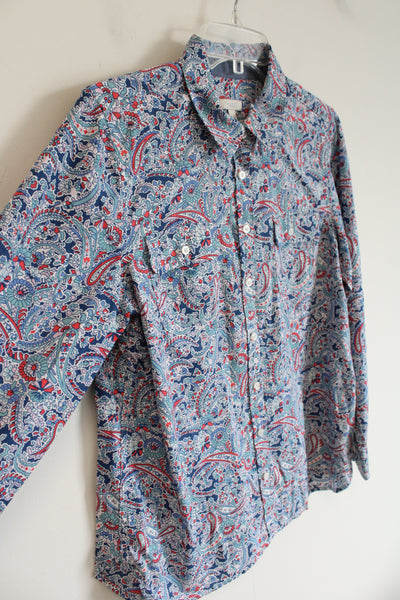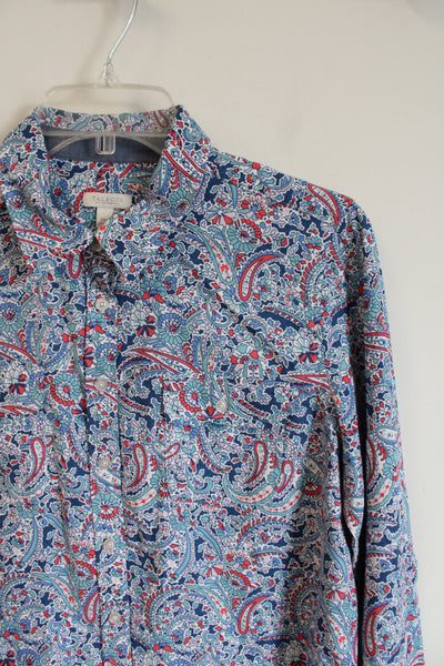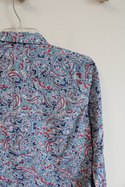 Talbots Blue & Pink Paisley Button Down Top | M Petite