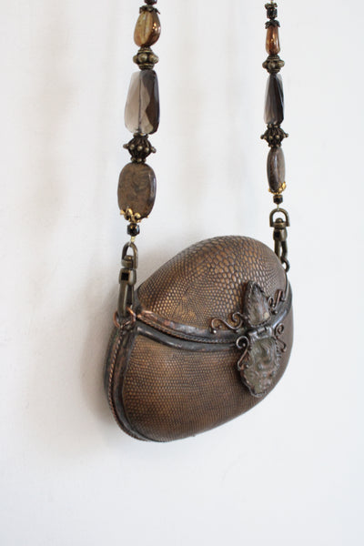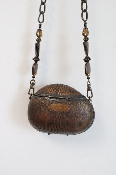 Vintage Maya Gem & Stone Chain Brown Textured Resin Handbag