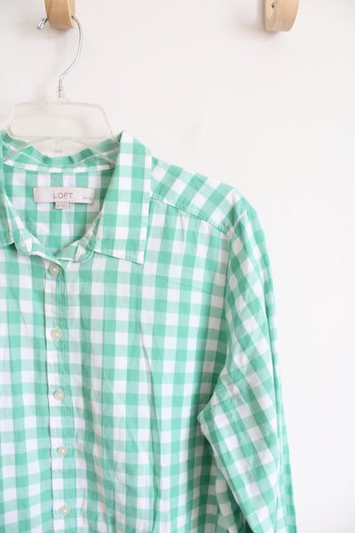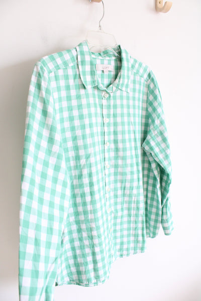 LOFT Light Green & White Plaid Button Down Shirt | XL Petite