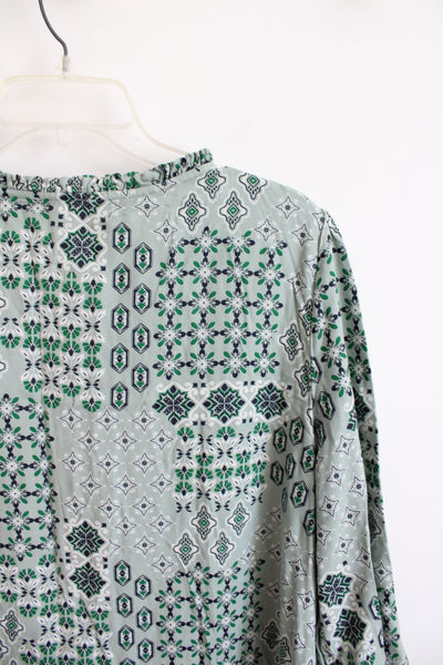 LOFT Mint Green Patterned Long Sleeved Dress | XXL