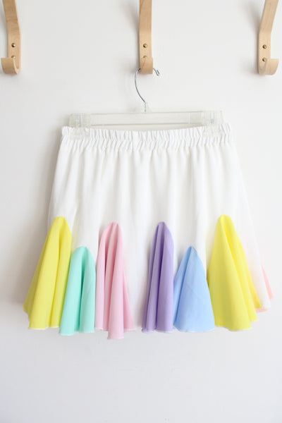 Main Strip White & Pastel Rainbow Flutter Mini Skort | S