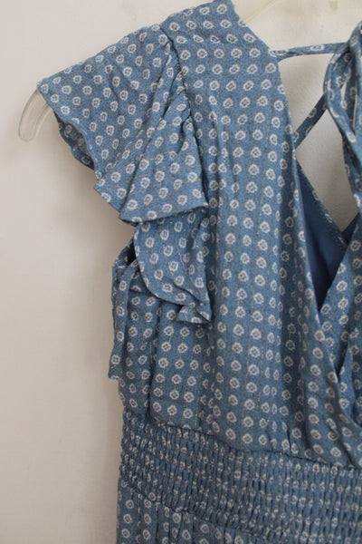 NEW Poppies & Roses Blue Patterned Ruffle Sleeve Jumpsuit | S