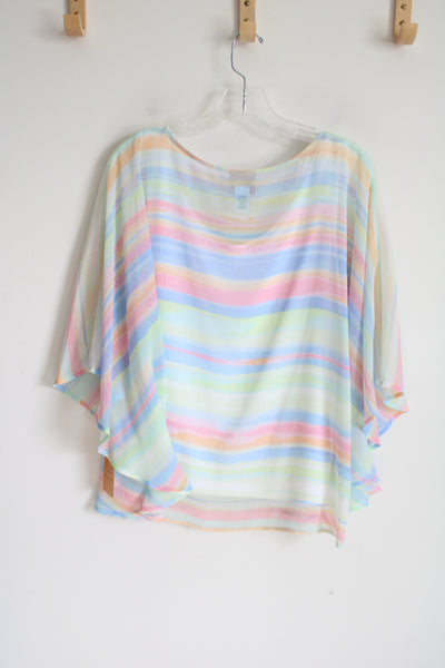 NEW Ruby Rd. Pastel Striped Chiffon Poncho Style Blouse | L