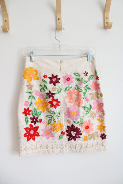 Maeve Anthropologie Ayaka Cream Embroidered Floral Lace Skirt | 2