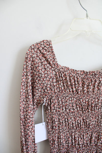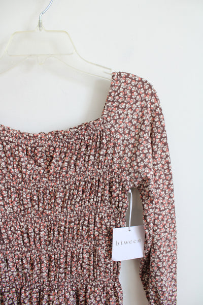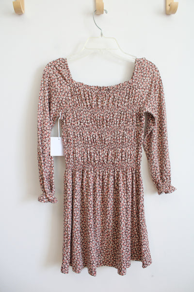 NEW Btween Brown Pink & Cream Floral Dress | Youth 7