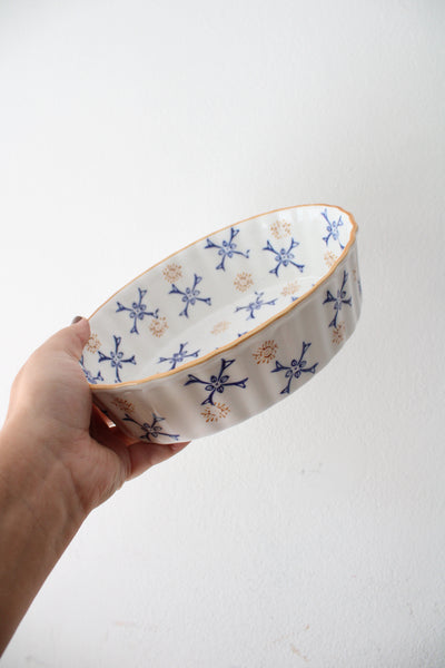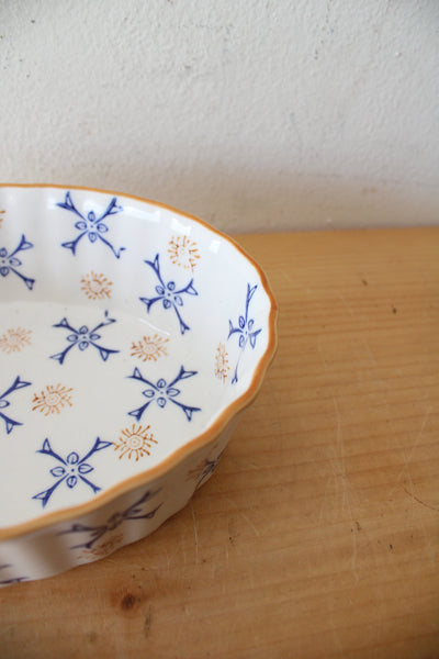 Temptations By Tara Blue & Brown Ribbed Scalloped Oval Small Casserole Dish
