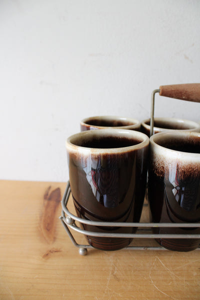 Vintage Brown Glazed Ceramic Cups | Set Of 8
