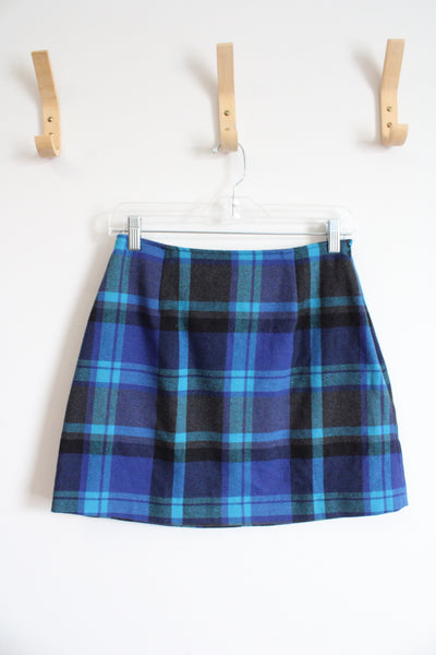 Vintage The Limited Blue Plaid Wool Blend Mini Skirt | 4