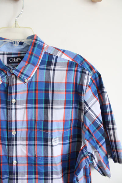 Chaps Easy Care Blue Red Green & White Plaid Button Down Shirt | XL
