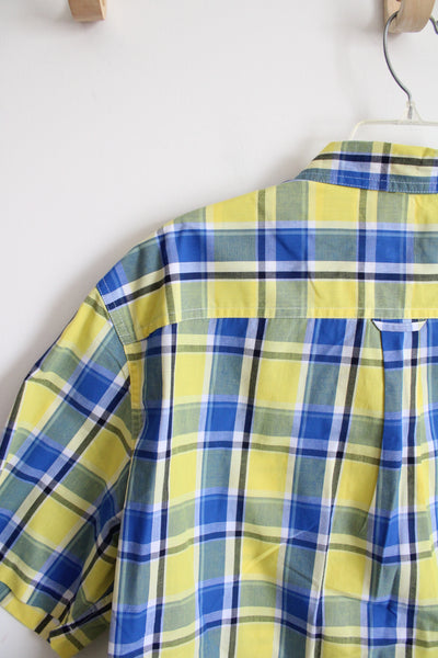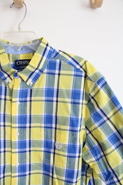 Chaps Easy Care Yellow & Blue Plaid Button Down Shirt | XL