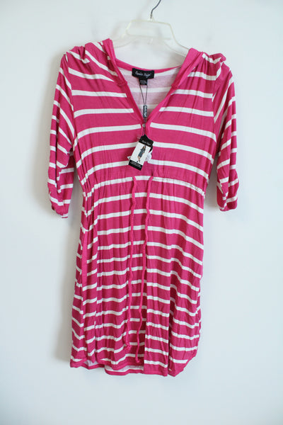 Charlie Paige Pink White Striped Hooded Tunic | S