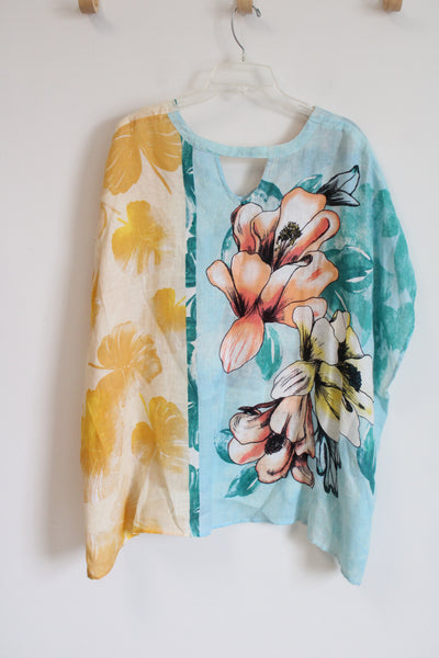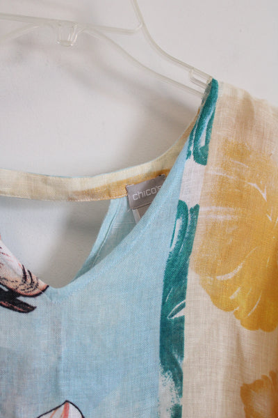 Chico's Linen Tropical Print Loose Fit Blouse | L/XL