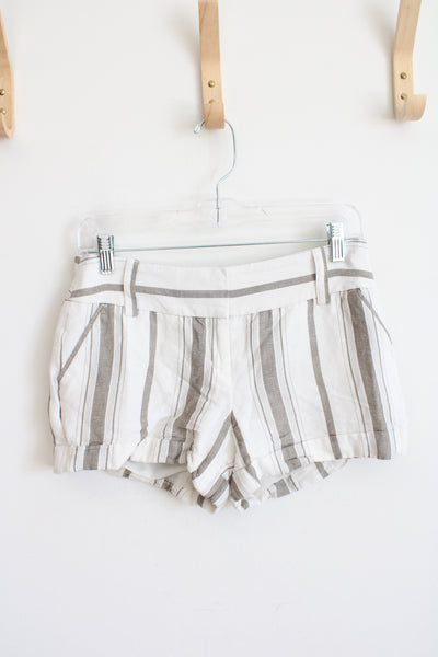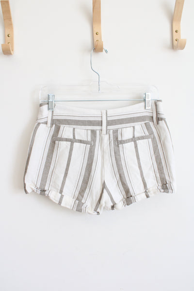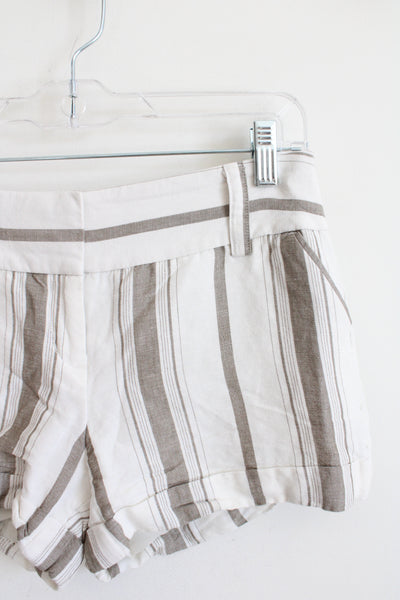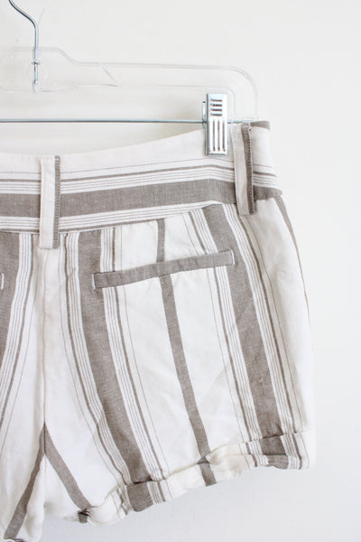 Express Cream & Tan Striped Linen Blend Shorts | 2