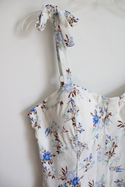 Lily Rose White & Blue Floral Tied Strap Dress | XXL