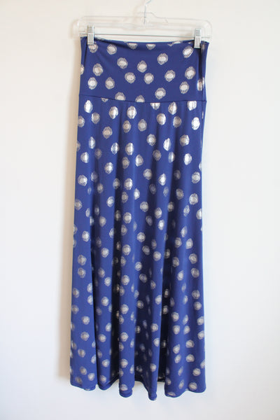 LuLaRoe Blue Silver Spotted Maxi Skirt | XS