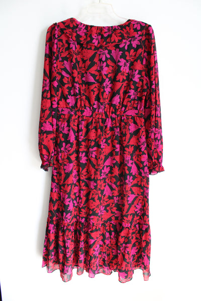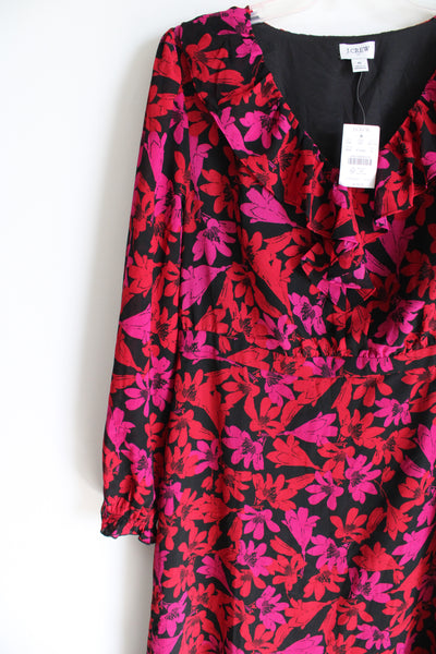 NEW J.Crew Red Pink Black Floral Chiffon Long Sleeved Dress | 6
