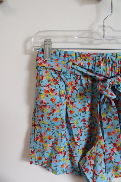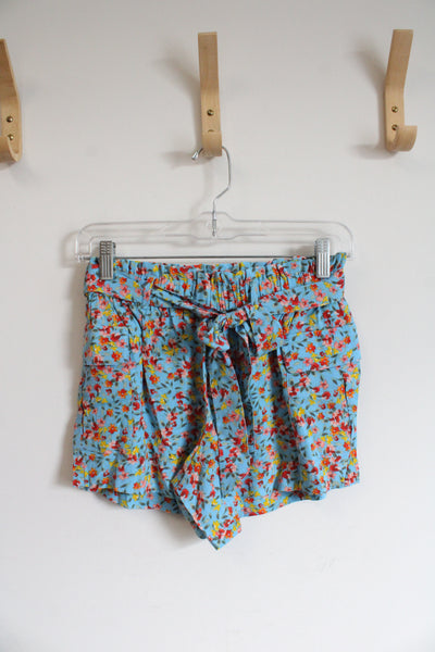NEW LOFT Blue Floral Belted Shorts | XXS Petite