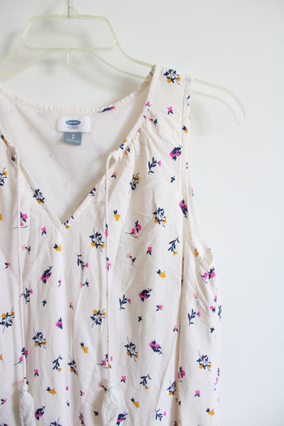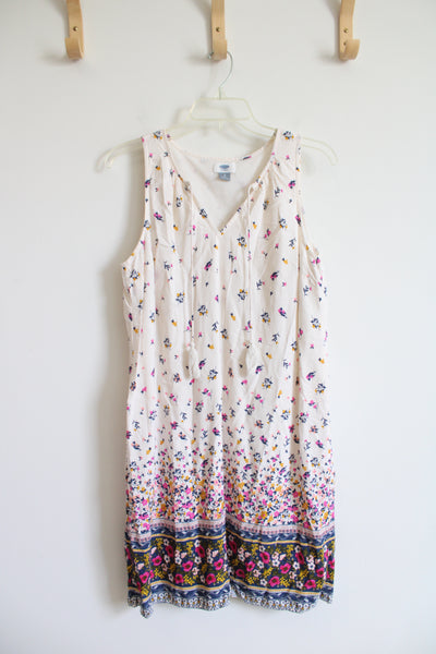 Old Navy Cream Blue Gold & Pink Floral Sleeveless Dress | S
