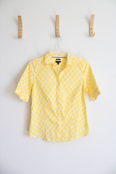Talbots Yellow & White Diamond Patterned Button Down Top | 6P