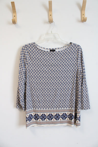 Ann Taylor Cream Navy & Brown Patterned Top | M