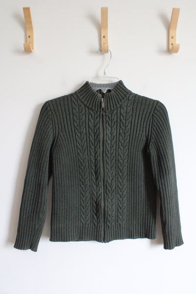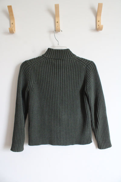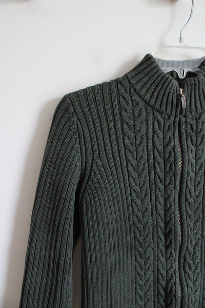 Lands End Olive Green Ribbed Full Zip Sweater | XS (2-4)