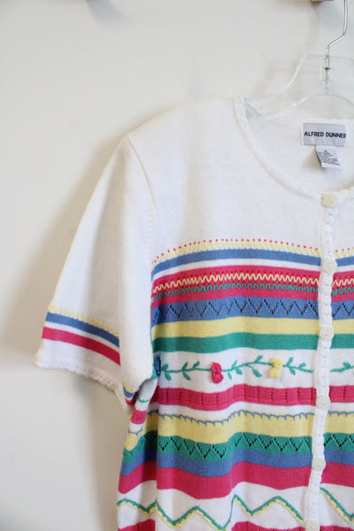 NEW Alfred Dunner White Colorful Striped Floral Button Down Shirt | XL