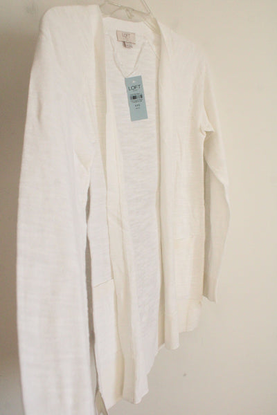 NEW Ann Taylor Lightweight White Rib Cotton Open Cardigan | XXS Petite